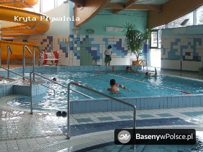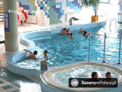 Krytą pływalnię zaprojektowała Pracownia Architektoniczna z Ostrowa Wielkopolskiego jako budynek dwubryłowy, wolnostojący. Jedną bryłę stanowi hala basenowa, przykryta lekko falowanym dachem na konstrukcji dźwigarów z drewna klejonego, drugą budynek z pomieszczeniami towarzyszącymi. Bryły nakładają się na siebie i przenikają tworząc przestrzenną kompozycję architektoniczną. Na parterze znajduje się holl wejściowy z szatnią, toaletami dla osób korzystających z pływalni. Stąd poprzez przeszklenia, zapewniono możliwość obserwacji hali basenowej. Z hollu można przejść na piętro oraz za barierkami kasowymi do korytarza doprowadzającego do zespołu szatni. W szatni przez korytarz "bosej stopy" przechodzi się do zespołu natrysków połączonych z toaletami i dalej na halę basenową. W obiekcie pływalni, oprócz głównego basenu o wymiarach 12m x 25m i głębokości od 1,2m do 1,8m, znajdują się m.in.: basen rekreacyjny o maksymalnej głębokości 1,2m, wyposażony w tryskacze wodne brzegowe, kaskadę brzegową masaż ścienny trzydyszowy, małą nieckę dla dzieci wyposażoną w grzybek wodny, otwartą rynnę zjeżdżalni wewnętrznej o dł. ok. 62m z basenem hamowanym i jacuzzi Oprócz tego, przebywający na pływalni mogą korzystać z kawiarni, bufetu, sauny, solarium, oraz z sali do ćwiczeń fitness.
